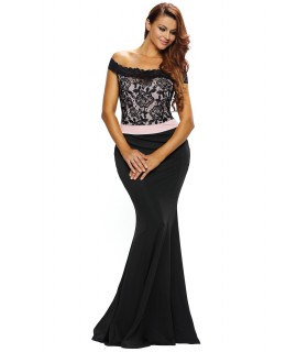 Koucla dark blue lace-orned long party dress [LAST CHANCE]