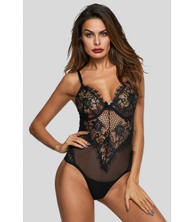 Spets orned svart strumpeband väst set