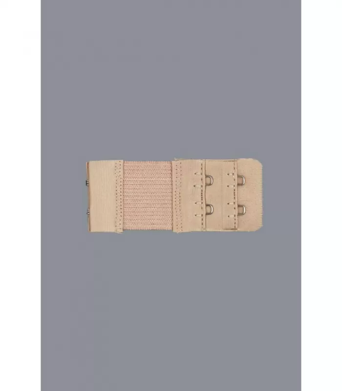 2-hakasellinen beige jatkopala bodyyn ja rintaliiveihin. Onko hakaskiinnityksellinen bodyn olka-haaramitta liian lyhyt? Jatkopalalla saat bodyyn lisäpituutta. Onko kupiltaan täydellisten rintaliivien ympärys liian napakka? Kaksihakasellinen jatkopala korjaa ongelman, kun kyseessä on 2-hakaselliset rintaliivit.