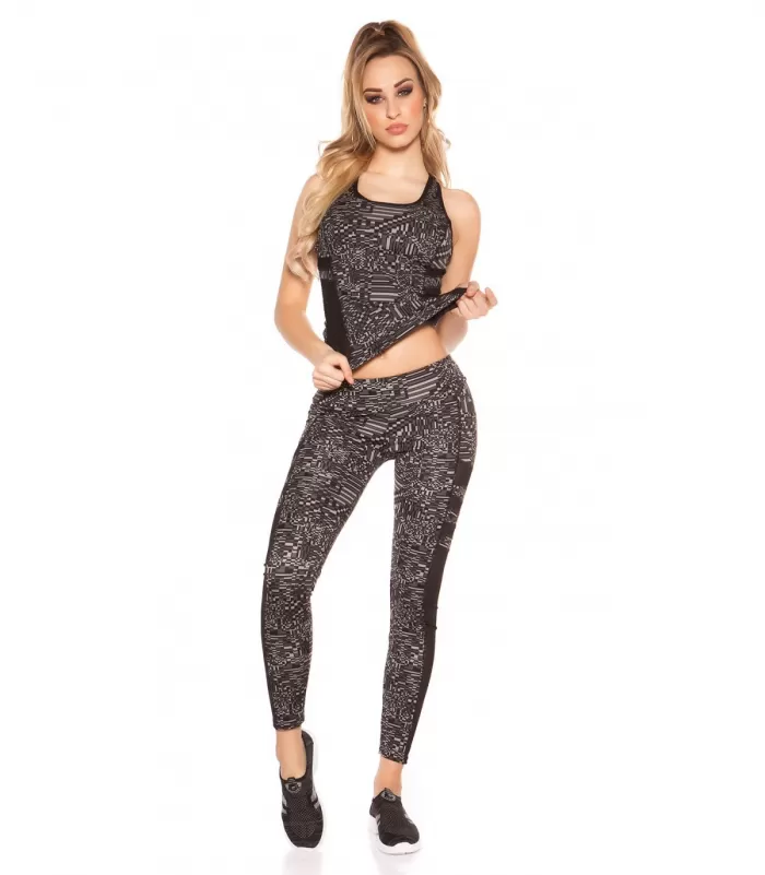 Mustat printtikuvioiset mesh-koristeiset treenitrikoot ja yhteensopiva treenitoppi. Käytä yhdessä tai erikseen!