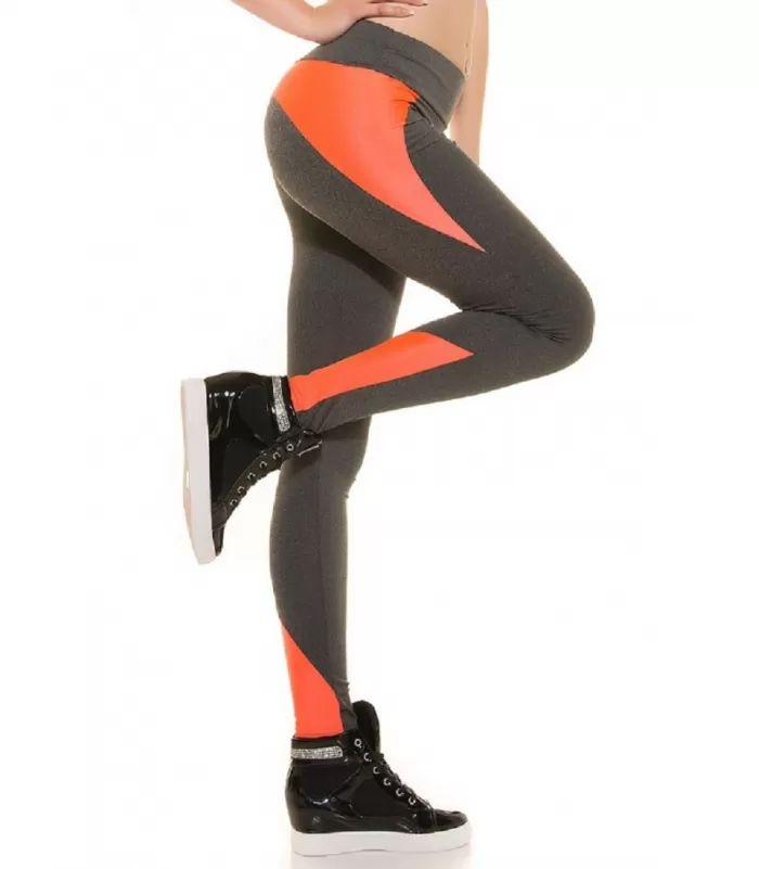 Harmaat treenitrikoot neonoransseilla tehosteilla. Sopii parhaiten lantioon nähden kapeavyötäröisille ja n. 165-senttisille.