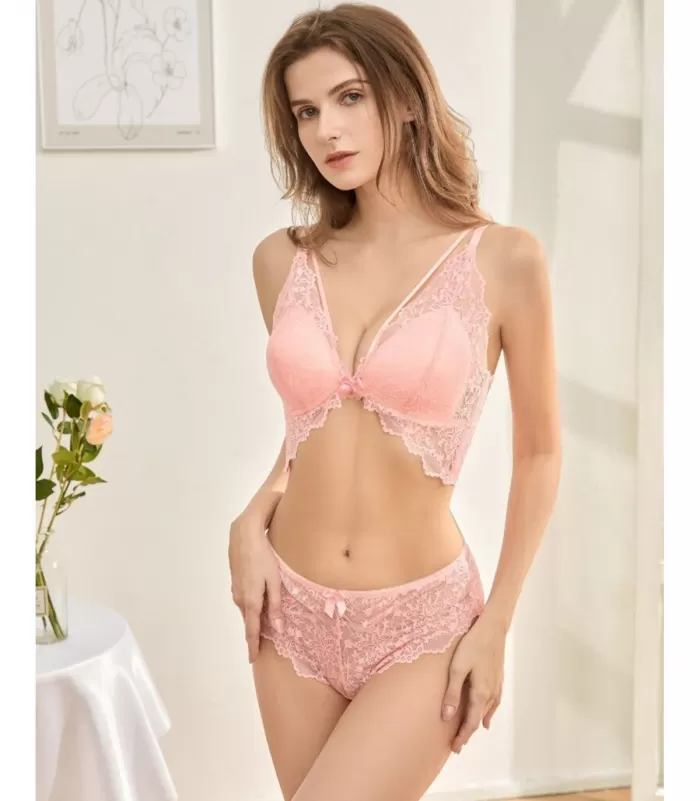 Kaunis lohenpunainen pitsinen alusasusetti, johon sisältyy kaaritueton pitsibralette remmeillä ja täydellisesti yhteensopivat läpinäkyvät pitsihipsterit. Kaarituettomat pehmustetut kupit sopivat parhaiten noin B-kupille. Säädettävät olkaimet ja tuplahakaskiinnitys kolmella säätövaihtoehdolla varmistavat hyvän istuvuuden.