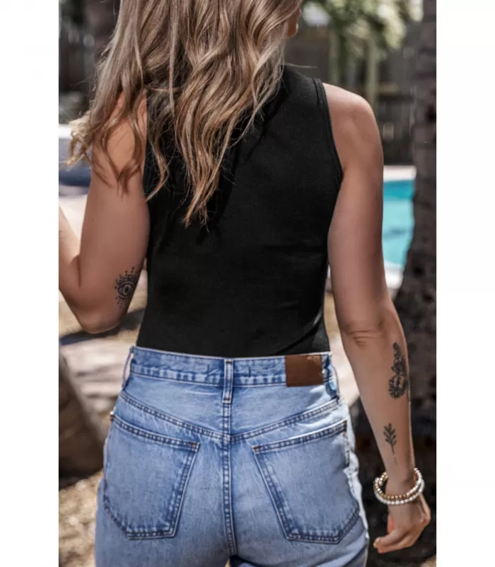 Musta vetoketjullinen ribbibody on monikäyttöinen vaate, joka on helppo stailata osaksi erilaisia asukokonaisuuksia. Miten avonaisen haluat päivän asusi olevan? Vetoketjua säätämällä saat asusta hetkessä halusi mukaan konservatiivisemman tai seksikkäämmän. Hihaton musta vetoketjubody on helppo yhdistää erilaisten neuletakkien tai jakkujen alle, joten saat sen ympärivuotiseen käyttöön. Haaroissa nepparikiinnitys.