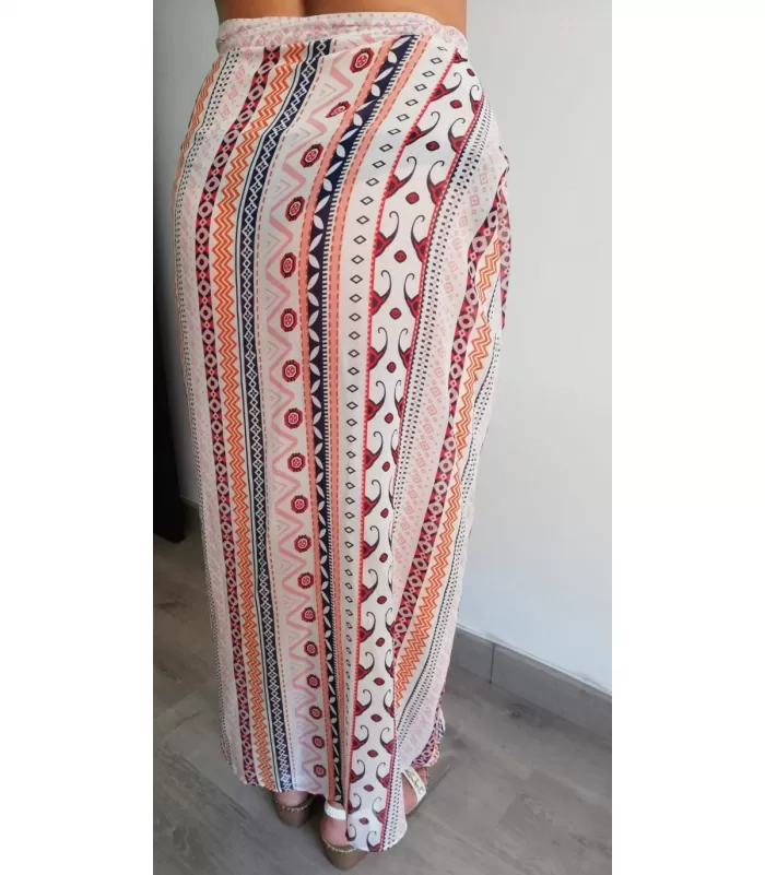 Printtikuvioinen korkeavyötäröinen kietaisumallinen läpikuultava rantamaksihame.