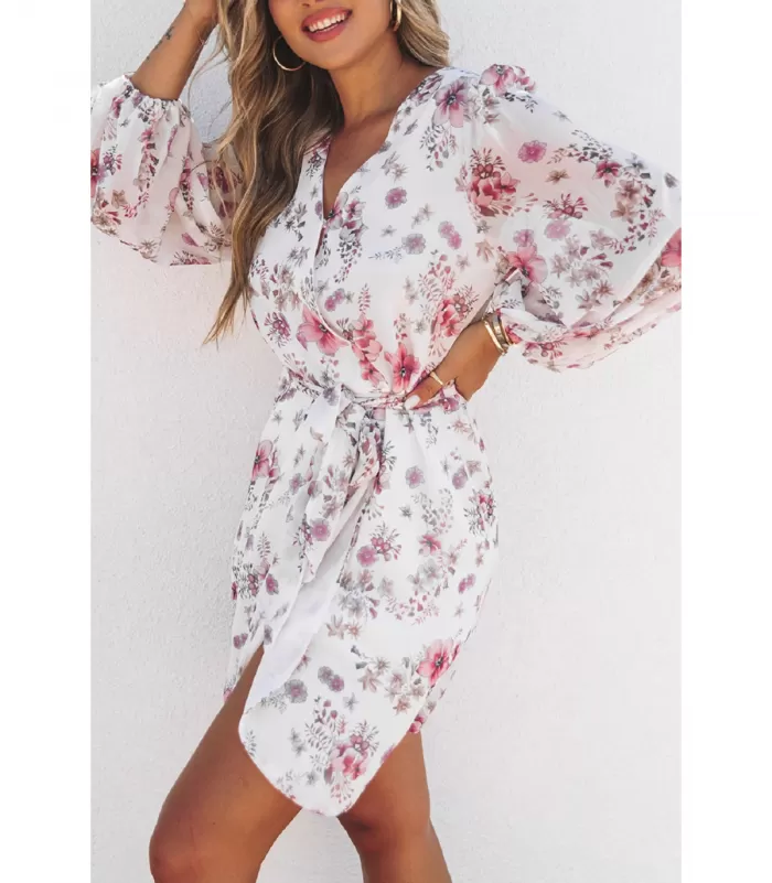 Valkoinen pitkähihainen kukkakuvioinen sifonkimekko pussihihoilla ja vyöllä. Kaunis valkoinen kukkamekko naisellisella wrap-look leikkauksella on täydellinen vaate esimerkiksi treffeille ja kesäjuhliin. Ihanat kevyet pussimaiset hihat ovat kuin kirsikka kakun päällä. Kukkakuosi on erityisen suosittu kesäaikaan, mutta paksumpien sukkahousujen kanssa saat mekon käyttöön myös muina vuodenaikoina.