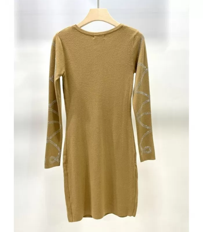 Cappuccino pitkähihainen strassikoristeinen neulemekko. Tämä on sinua varten, joka kaipaat pukeutumiseesi säihkettä mutta palelet helposti. Erinomainen valinta erityisesti talvikauden iltamenoihin. Säihky ja erotu eduksesi.