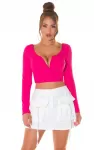 Lila pitkähihainen lyhyt paita, jota voi käyttää monella eri tapaa. Paidassa on kuppiosat, joten sen alle ei tarvitse välttämättä liivejä.