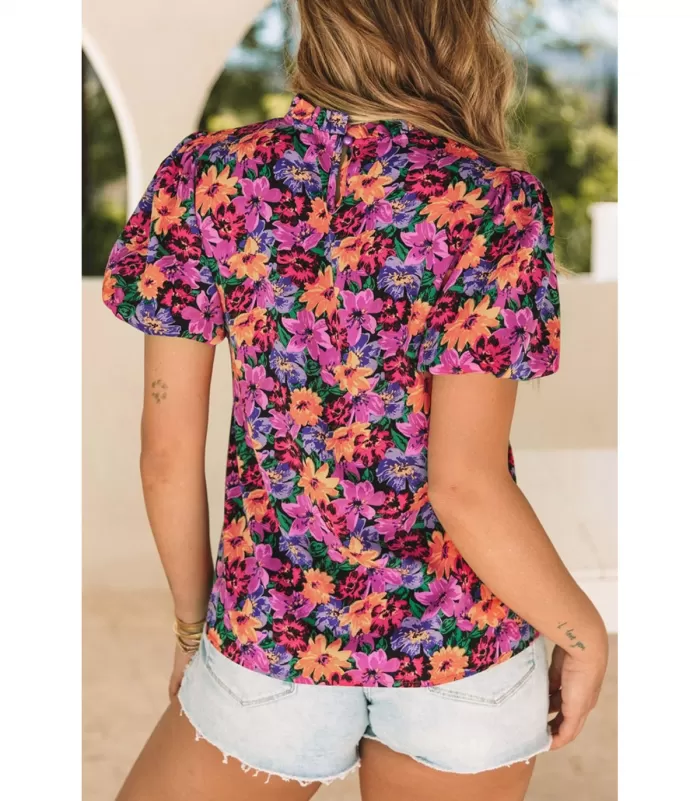 Upea värikäs puhvihihainen kukkapaita näyttää erityisen upealta kesällä. Kaunis kukkakuosi ja lyhyet puhvihihat ovat ihastuttava yhdistelmä. Kukkapusero on täydellinen yläosa, kun haluat pukeutua naisellisesti. Erityisen naiselliselta se näyttää korkeavyötäröisen alaosan kanssa; laita helma vyötärön sisään tuodaksesi naiselliset muotosi esille.