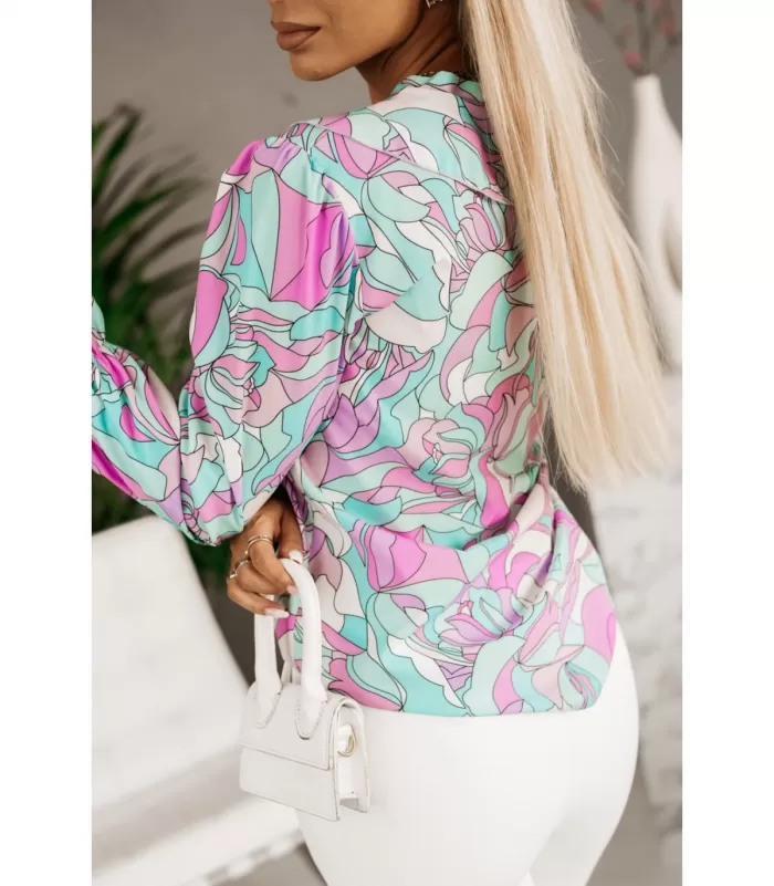 Värikäs printtikuvioinen väljä pusero näyttävillä yksityiskohdilla. Tyylikäs pusero, joka erottuu massasta.